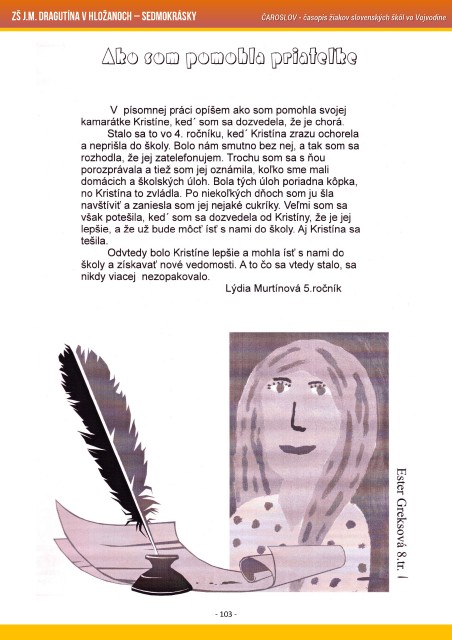 ZŠ J.M. Dragutína v Hložanoch – Sedmokrásky ČAROSLOV - časopis žiakov slovenských škôl vo Vojvodine - 103 -