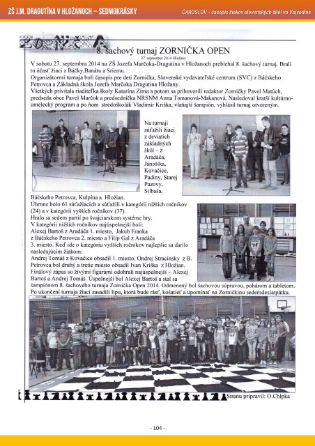 ZŠ J.M. Dragutína v Hložanoch – Sedmokrásky ČAROSLOV - časopis žiakov slovenských škôl vo Vojvodine - 104 -