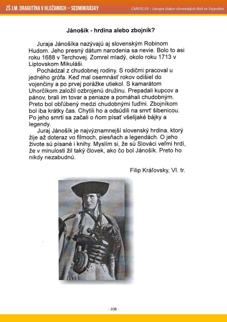 ZŠ J.M. Dragutína v Hložanoch – Sedmokrásky ČAROSLOV - časopis žiakov slovenských škôl vo Vojvodine - 108 -