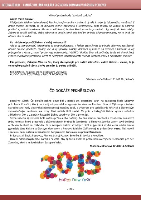 vydavateľským centrom, na ktorý žiaci našich škôl zaslali 33 prác v kategórii žiakov vyšších ročníkov