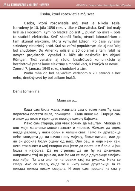 ZŠ J.A. Komenského v Kulpíne - Ozveny ČAROSLOV - časopis žiakov slovenských škôl vo Vojvodine - 76 -