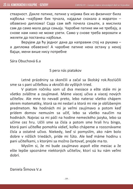 ZŠ J.A. Komenského v Kulpíne - Ozveny ČAROSLOV - časopis žiakov slovenských škôl vo Vojvodine - 77 -