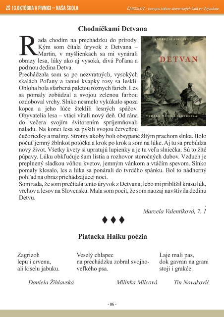 ZŠ 13.októbra v pivnici – naša škola ČAROSLOV - časopis žiakov slovenských škôl vo Vojvodine - 86 -