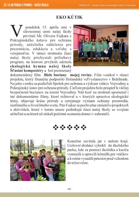 ZŠ 13.októbra v pivnici – naša škola ČAROSLOV - časopis žiakov slovenských škôl vo Vojvodine - 87 -