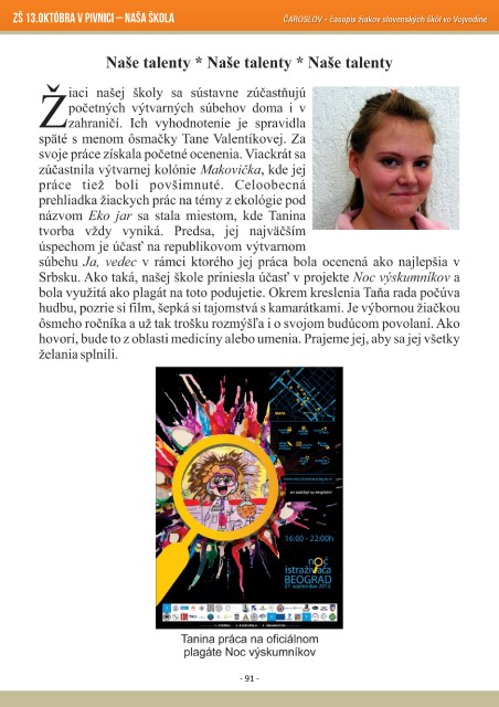 ZŠ 13.októbra v pivnici – naša škola ČAROSLOV - časopis žiakov slovenských škôl vo Vojvodine - 91 -