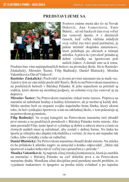 ZŠ 13.októbra v pivnici – naša škola ČAROSLOV - časopis žiakov slovenských škôl vo Vojvodine - 92 -