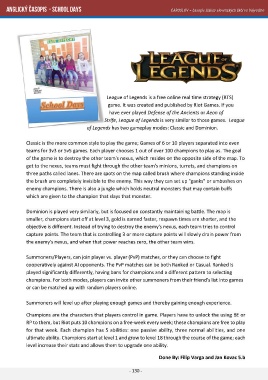 teams for 3v3 or 5v5 games. Each player chooses 1 out of over 100 champions to play as. The goal